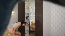 back  Pretty teen with nice boobs at home. (video)