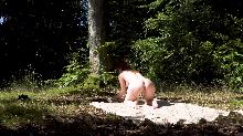 back  Redhead pussy close-up in the nature (video)