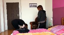 back  Two lesbians - Naked cleaning (video)